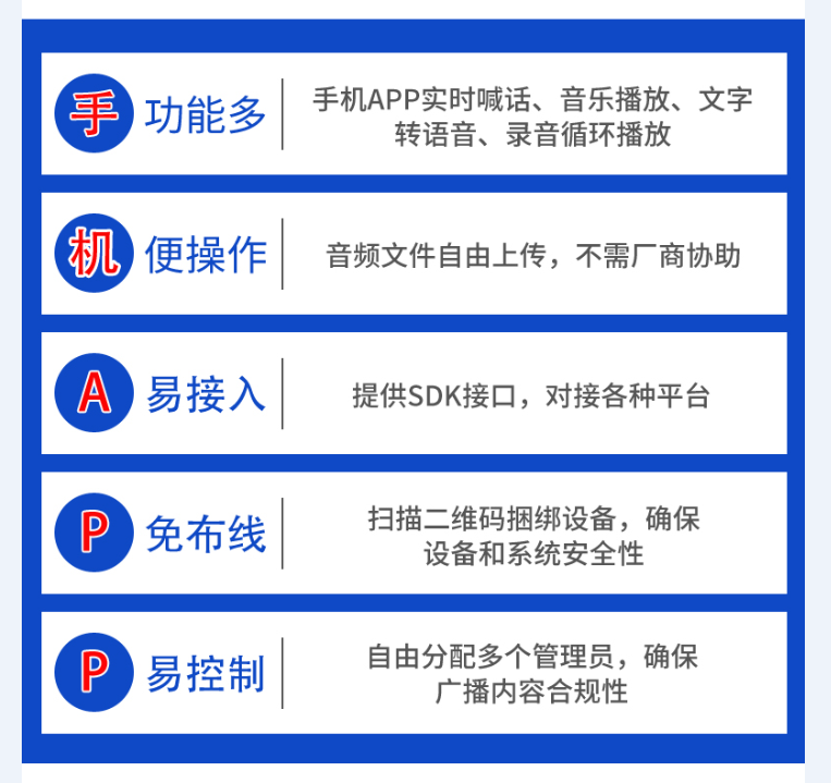3、产品类型分别有:室外4G网络无线广播音柱、室内4G网络无线广播壁挂终端、室外4G网络无线广播壁挂终端、4G网络无线广播功放、4G网络无线广播麦克风等;