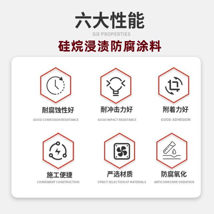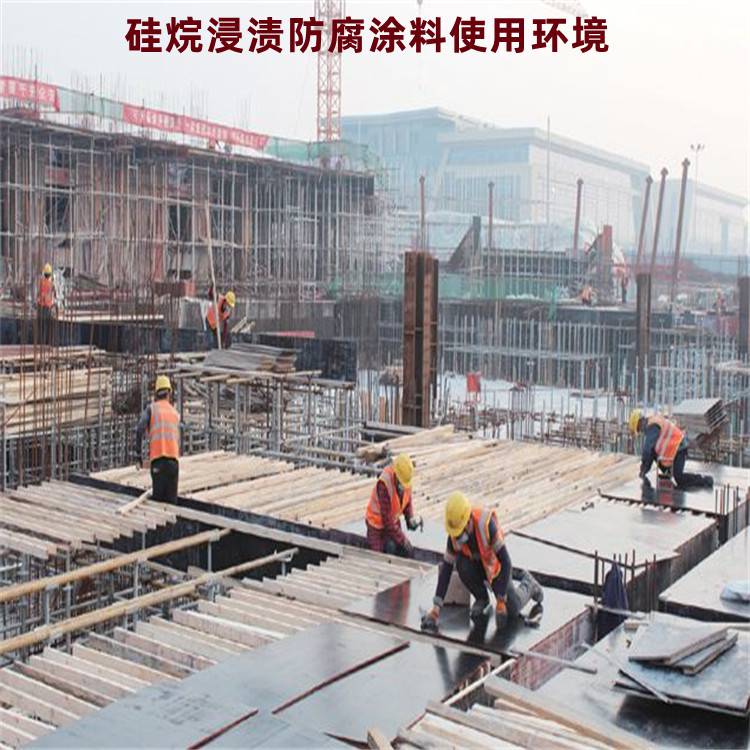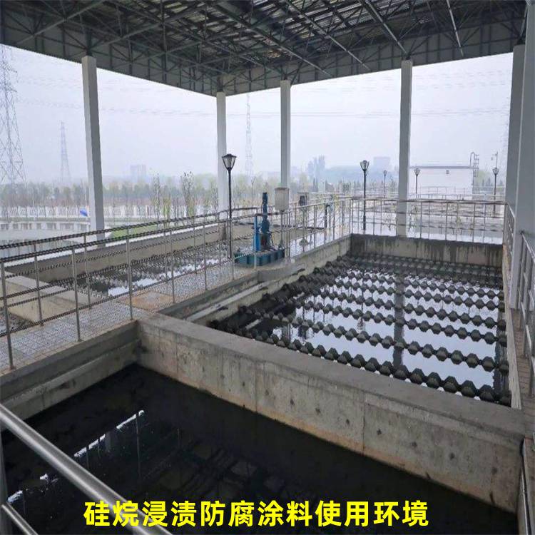 硅烷小分子结构与混凝土基材有着良好的亲和力,能轻易渗透到混凝土内部,硅烷活性成分与暴露在酸性和碱性环境中的空气及基底中的水分产生化学反应,生成羟基团。这些羟基团将与基材及其本身产生交联、堆积,结合在毛细孔的内壁,终在混凝土的毛细孔表面形成一层牢固的憎水性有机硅网络保护层,能够有效地阻止外部水分和有害物质的入侵,并让内部水气和有害气体逸出,从而大大提高混凝土结构的防水性、耐盐碱性、抗冻融性等特性,延长钢筋混凝土寿命。