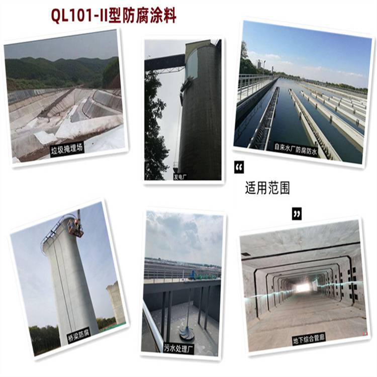 QL101-II型防腐涂料是我公司根据涂料自身的使用特性和防护环境的要求开发的主要用于混凝土结构防腐蚀的防腐防水涂料,该涂料水性绿色防腐,适应于污水处理厂污水混凝土池壁防腐防水抗渗以及冷却塔混凝土池壁的防护。满足国家标准GB50046-2018《工业建筑防腐蚀设计规范》的要求。