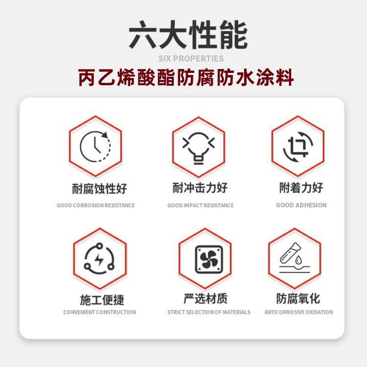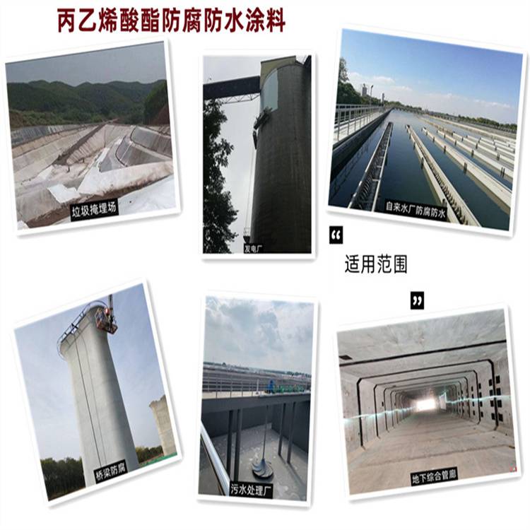 丙乙烯酸酯防腐防水涂料是一种耐腐蚀的多功能涂料。可在有酸、碱、盐、有机溶剂等腐蚀介质的环境下使用。其可用于各种化工大气腐蚀环境,以抵抗化工气体、烟雾及飞溅的化学品浸蚀;或用于化学品贮槽、废水池、排水沟等涂装,以便给混凝土结构附一层保护衣。