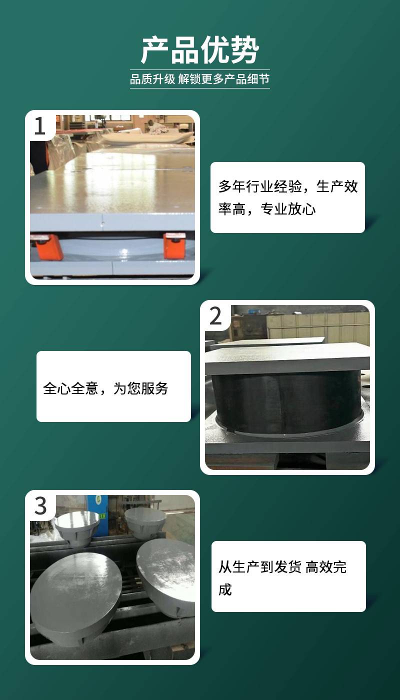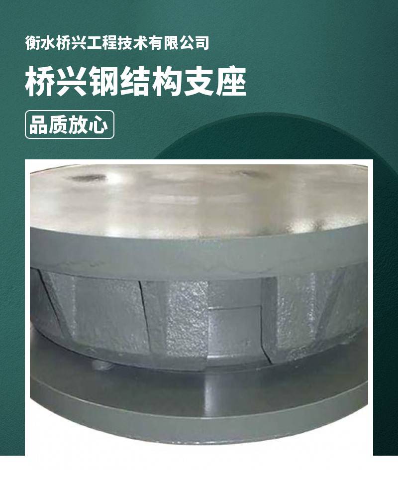 成品球形钢支座**** QZ球型橡胶支座可安设计需要预设转角和位移,由施工单位在定货前提出预设转角和位移量的要求。JQZ球铰支座通过对优质材料的选用和结构的优化设计(专利技术) ,大大提升了支座的承载能力,改善了支座的转动性能和滑动性能,延长了支座的使用寿命,并且减小了支座的结构尺寸,减轻了重量,降低了成本,同时安装施工方便、更换维护容易,是一款同时满足国内外“双标准、多规范”的新型桥梁构件,属行业推荐标准系列产品。