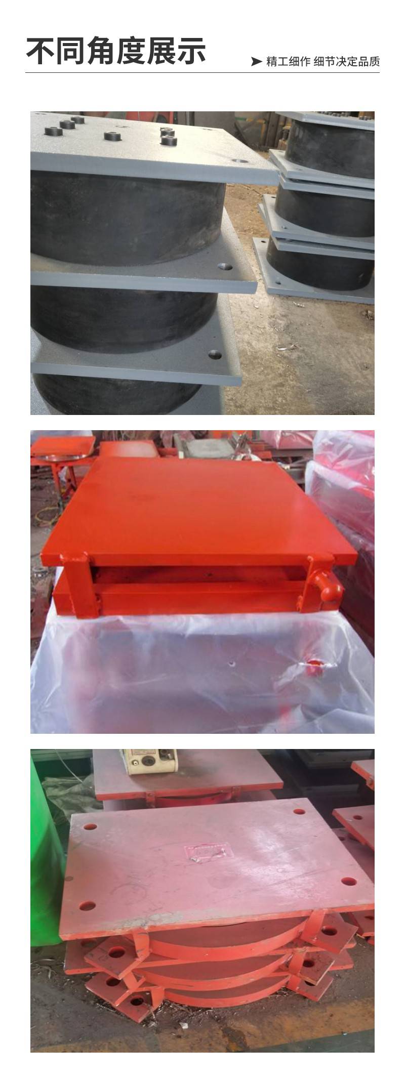 通过球面聚四板的滑动来实现支座的转动过程,转动力矩小,而且转动力矩只与支座球面半径及板的摩擦系数有关,与支座转角大小无关,特别适用于大转角的要求,设计支转角可达0.05rad。