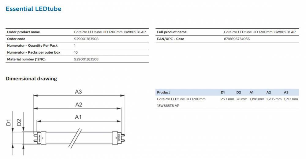 Essential LEDtube is an affordable LED tube that is suitable for replacing T8 fluorescent lamps. The product provides a natural lighting effect for use in general lighting applications, as well as instant energy savings – an environmentally friendly solution