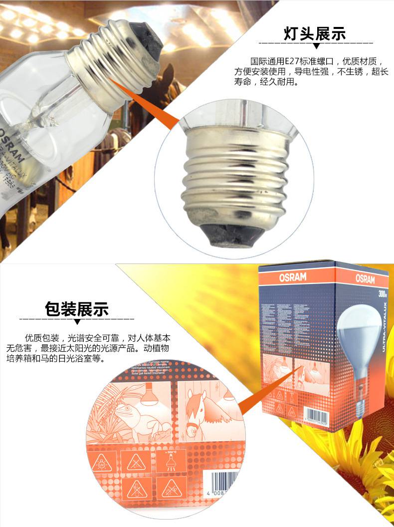 欧司朗ULTRA VITALUX 300W E27老化测试灯特点: