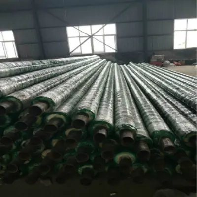 本产品具备密度低。传热系数低,抗老化,抗低温,防腐蚀,不吸湿,操作简便,零污染等优点铺设式玻璃钢缠绕直埋管 供暖用岩棉板蒸汽保温钢管常见自然环境预制直埋保温管用以集中供暖,供冷和热油的运输及分配保温钢管的无缝钢管和聚乙烯外护管,二者用发泡聚氨酯保温隔热材料密切融合为一体。管经范围为Φ90Φ1240,保温管道全名叫聚乙烯塑料聚氨酯硬泡沫发泡保温管,它的功能是文物保护工作管内部结构液体温度,避免和外界产生热传导,致使液体环境温度大量流失。这种制成品管埋在土里,也可以延长管路的使用寿命,节省了成本费!它机壳便是聚乙烯塑料,即PE管,又叫夹克外套皮。色调一般有黑色和黄色,即黑夹克与黄夹克。聚氨酯保温选用稳定型丁腈胶和频繁羟基多苯,基多异氰酸酯为原料,在金属催化剂,发泡胶,表活剂等功效下经有机化学体现发泡材料成的。本产品具备密度低。传热系数低,抗老化,抗低温,防腐蚀,不吸湿,操作简便,零污染等优点