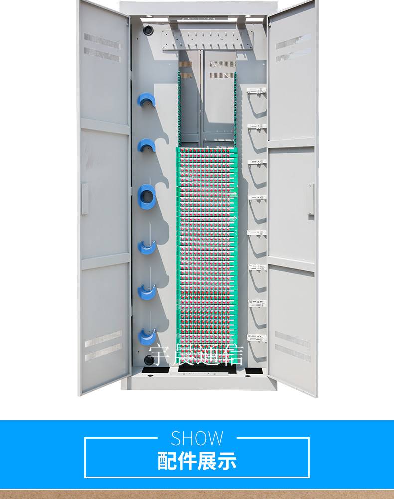 宁波宇晨光纤配线架ODF (Fiber Optic Distribution frame),又称光纤配线柜,是用于光纤通信网络中对光缆、光纤进行终接、保护、连接及管理的配线设备。在本设备上可以实现对光缆的固定、开剥、接地保护,以及各种光纤的熔接、跳转、冗纤盘绕、合理布放、配线调度等功能,是传输媒体与传输设备之间的配套设备。