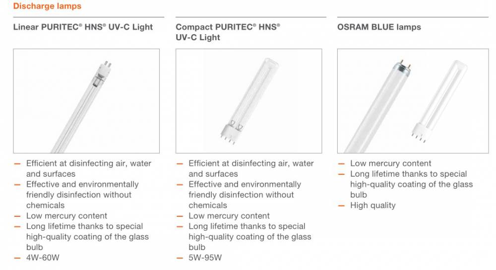 欧司朗紫外线杀菌灯产品特点:主导波长:254 nm(OFR型)