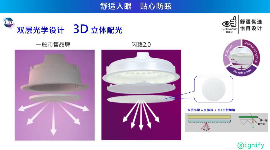 飞利浦闪耀LED筒灯舒适入眼,贴心防眩,创新双层光学设计,提供舒适光照,有效抑制眩光,降低视觉疲劳