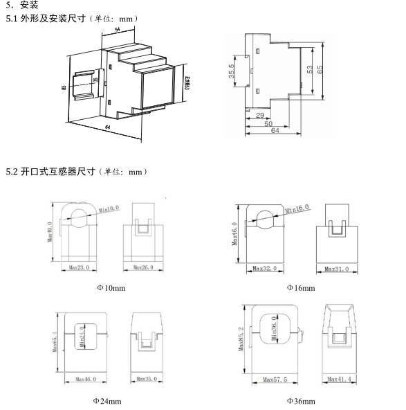 外置罗氏线圈和开合式互感器的导轨式多功能电力仪表,适用于冶炼、钢铁、电焊、半导体等高能耗行业的节能改造工程,也适用于分布式光伏并网柜的功率监测、电力需求侧管理等应用。具有无需拆一次母线、接线简单方便、施工安全,为用户节约改造成本、提率等特点。它集成全部电力参数的测量(如单相或者三相的电流、电压、有功功率、无功功率、视在功率、频率、功率因数)以及的电能监测和考核管理。同时它具有多种外围接口功能可供用户选择:带有RS485通讯接口,采用MODBUS-RTU协议可满足通讯联网管理的需要;带开关量输入和继电器输出可实现断路器开关的“遥信”和“遥 控”的功能,采用LCD显示界面,通过面板按键来实现参数设置和控制,非常适合于实时电力监控系统。