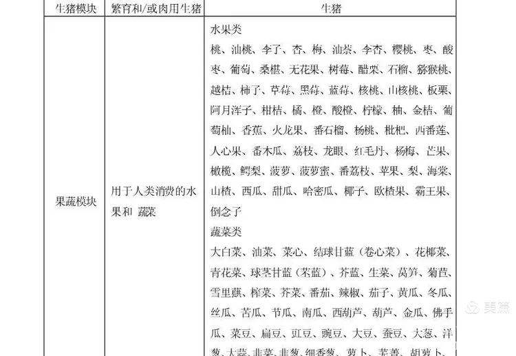 用生猪果蔬模块用于人类消费的水果和蔬菜作物模块用于人类消费、动物消费的作物产品(如