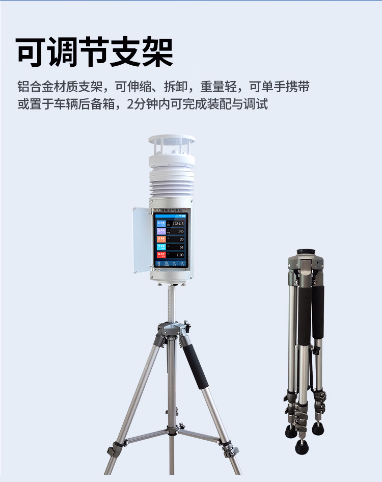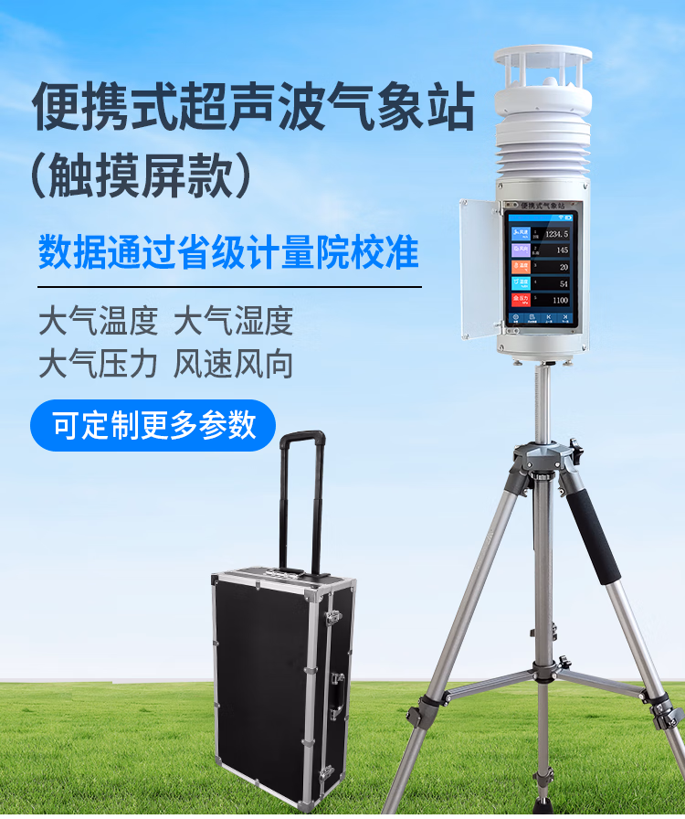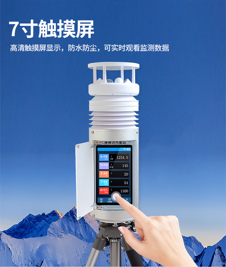 YG-BXZ-2便携式超声波气象站(7寸触摸屏)是一款高集成度、高可靠、微功耗、体积轻巧、可快速安装、可伸缩的便携式气象站。它支持多种通信方式、免调试、可折叠伸缩、自带可充式电源等特点,使其非常适用于各类应急临时气象短期观测、长期连续的小型气象监测和移动气象监测等各类气象数据的获取。该便携气象站配有一体化超声波多合一环境监测传感器,其集成度高,最多可集成16种环境监测要素,比如风