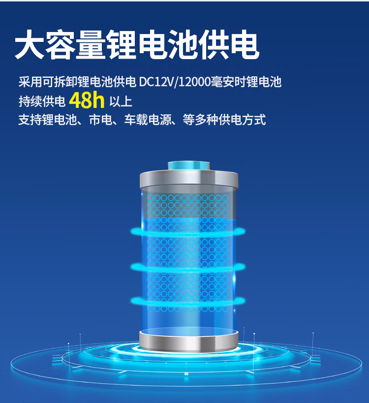 标 配 | DC12V/12000毫安时锂电池(请使用出厂自带的专用锂电池充电器) |