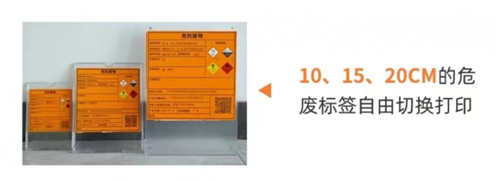 危废标签打印机DT210 /DT210S一机三打,支持3种尺寸标签打印,10cm,15cm,20cm的危废标签自由打印切换。纸仓滑块弹簧式设计,自由调整固定纸卷。