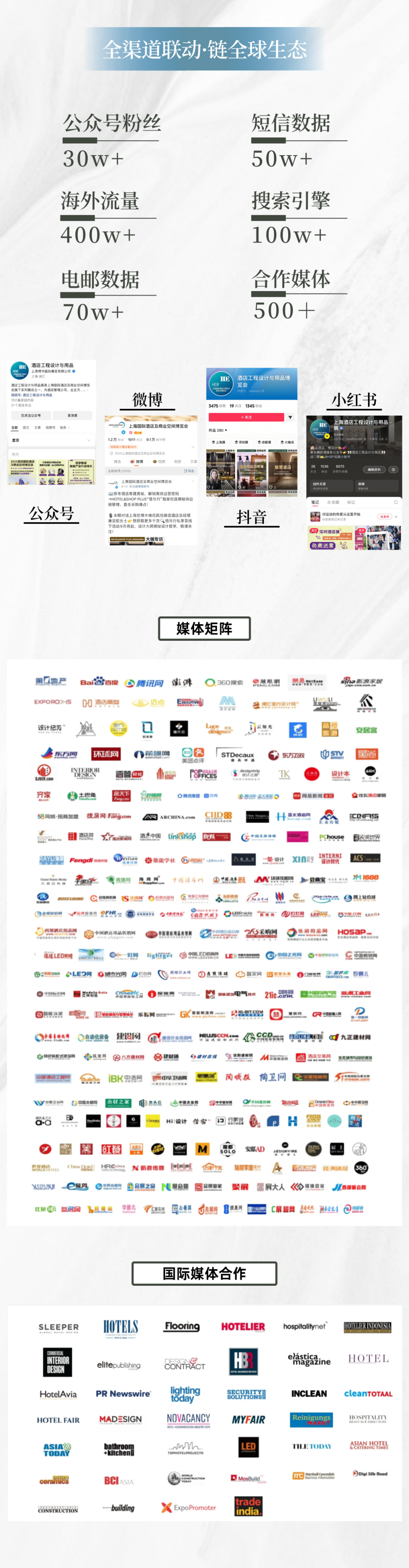 展会深挖行业资源,宣传覆盖官方网站、小程序、媒体矩阵等全渠道,全方位为品牌赋能,链接全球酒店及商业空间生态圈,呈现更好的宣传效果。