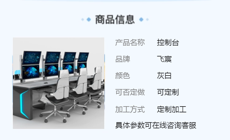 行业经验丰富,深度理解指挥中心的实用需求。 严格的质量控制体系,确保每一米控制台都符合高标准。 产品设计兼顾美观与实用,兼容多种软硬件接口。 提供定制化服务,能够根据客户需求灵活调整尺寸和功能。 完善的售后服务体系,保障设备长期稳定运行。六、总结与购买建议