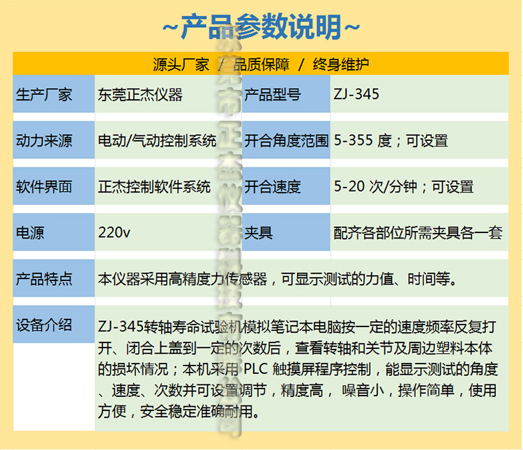 自动化操作流程,减少人工干预,提高检测精度与重复性。 多角度、多工况扭力及寿命测试,满足不同产品设计需求。 实时数据监控和分析,便于追踪生产质量趋势。 模块化设计,方便维护与升级,适应行业持续发展。 节约人力资源成本,提高生产效率,降低因产品质量问题带来的售后风险。五、东莞市正杰仪器科技有限公司的专业保证
