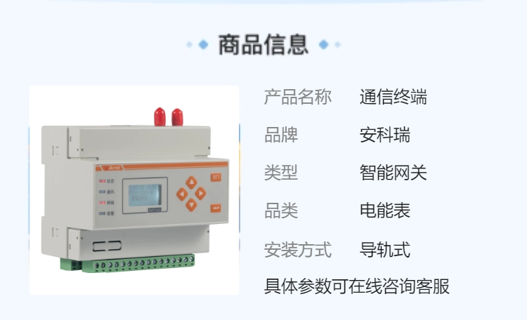 面对市场上多样的无线通信设备,选择一个稳定、功能全面的智能网关显得尤为重要。江苏安科瑞电器制造有限公司凭借长期的行业沉淀和技术积累,推出的AWT200-1E2S无线通信终端是一款值得信赖的产品。