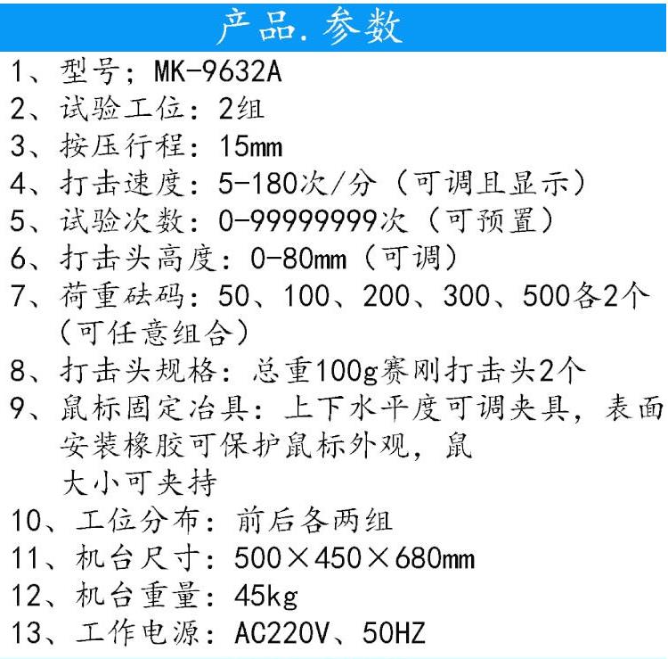 鼠标按键作为操作设备的核心部分,其响应速度、按压力度和寿命是关键性能指标。该测试机通过模拟多种点击频率和力度,持续检测按键的弹性、寿命及稳定性。系统能够自动记录按键动作数据,识别可能存在的卡顿或异常反应,确保每一个鼠标按键能够经受长时间的使用而不失效。