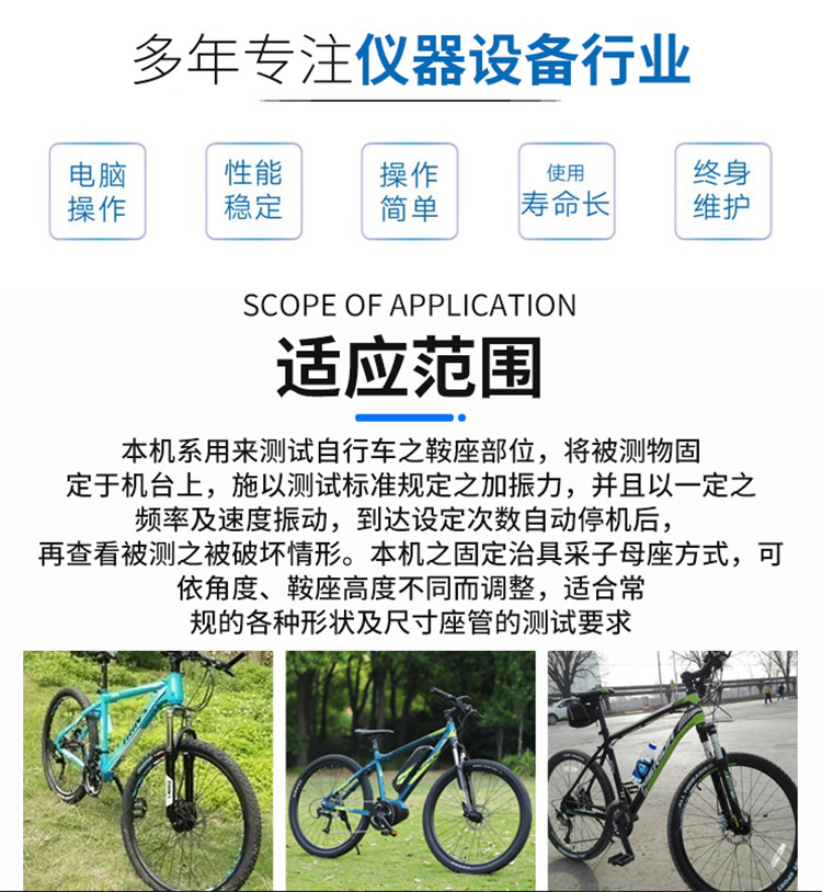 四、适用范围广泛,助力多行业发展虽然主要针对自行车椭圆车鞍座鞍管,但该疲劳和强度测试设备同样适用于其他轻工及交通工具领域的类似管件结构。随着轻量化和材质多样化趋势的到来,这种多功能测试平台显现出更强的适应性和价值。