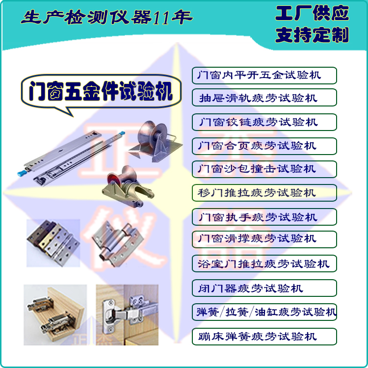 定制化生产满足多样测试需求市场上的门铰合页和门窗类型丰富多样,测试需求各异。东莞市正杰仪器科技有限公司提供量身定制的试验机解决方案,针对不同规格和形态的门铰及窗户,设计与调整测试夹具和程序,确保每一台设备都能精准适配客户的独texu求。