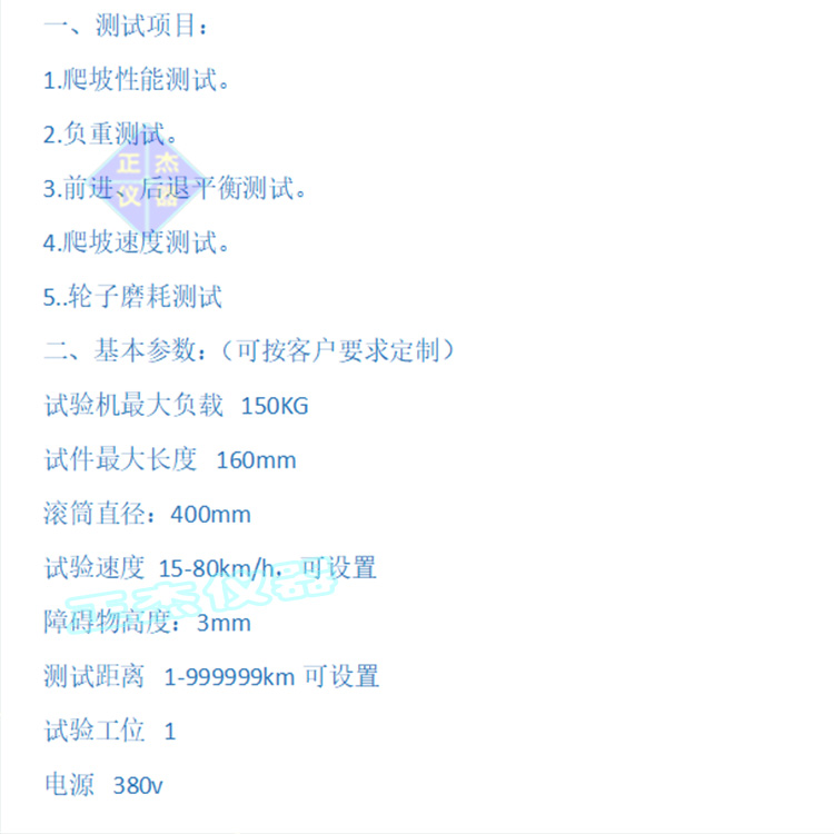 为什么这些指标重要? 耐久性保证:独轮车等设备在临场环境中经常承受各种复杂疲劳载荷。疲劳试验能够暴露潜在结构缺陷,防止因设计不足导致的安全事故。 爬坡性能适应性:爬坡是衡量电动车动力和控制性能的关键指标,直接影响用户安全和使用体验。模拟实际道路场景的测试才能确保产品在多种环境下表现稳定。 负重及续航表现:体感车通常依赖电池供能,负重行走时的能耗变化是衡量续航能力和设计合理性的重中之重。 技术实现的细节价值东莞市正杰仪器科技有限公司的这台多功能测试机应用了先进的传感技术与程序控制系统,具有以下优势: