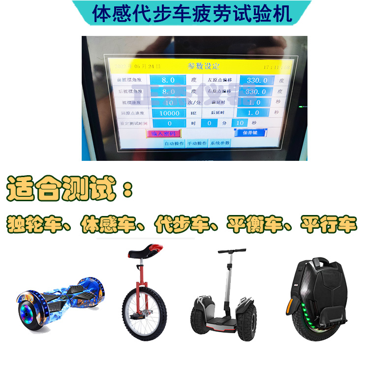 产品多功能性深度解析这套测试设备融合了三大核心检测功能。首先是独轮车疲劳试验,可以模拟长时间使用条件下的机械部件磨损和疲劳状态,**反映产品的耐用度和稳定性。其次,针对平衡车设计的爬坡性能测试模块,能够模拟不同坡度与不同负载条件,评估电机功率、控制算法及材质强度表现。最后,体感车耗负重行走测验则侧重于电池续航、负重分布以及行走平稳度的分析。三种模式相辅相成,有效覆盖了研发测试和质量管控的多重需求。