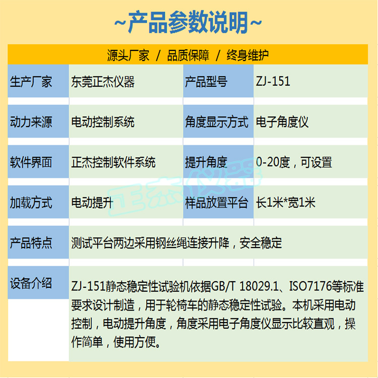 选择护理床斜坡静态稳定性试验台及轮椅车驻坡性能测试台,关键在于设备的精度、耐用性及服务体系。东莞市正杰仪器科技有限公司提供的不仅是产品,更是一站式解决方案,包括安装指导、操作培训及售后维护。此外,随着智能医疗的发展,这类试验设备将逐步向自动化和智能化方向升级,未来可通过联网实现远程监控和数据云存储,更好满足数字医疗管理需求。