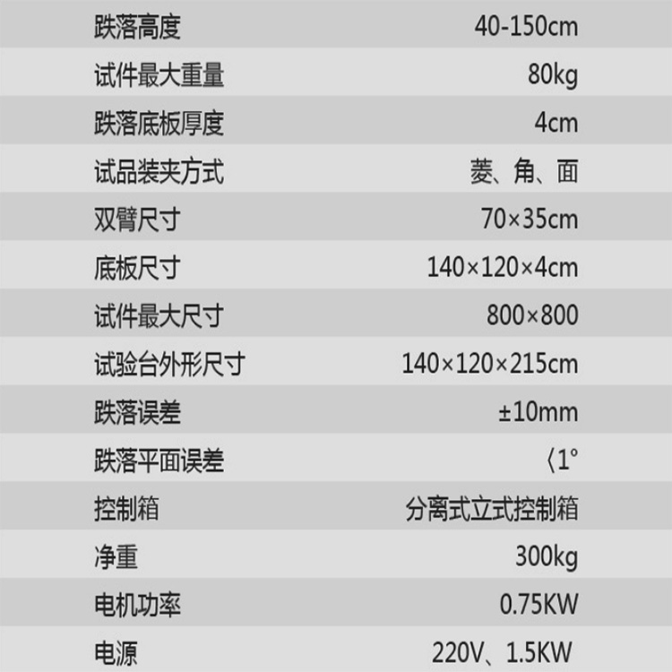单臂跌落机是通过一个摆臂结构,实现物品从预定高度的自由跌落,从而模拟运输、搬运过程中可能遭遇的冲击和跌落环境。与传统多臂跌落机相比,单臂跌落机结构简单、维护方便,占地空间小,且具备较强的灵活性和重复性。