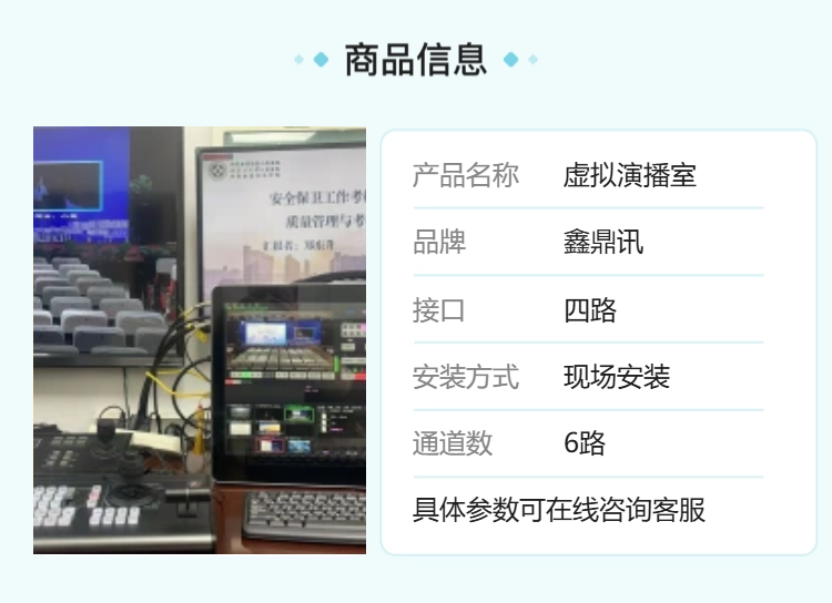 总结来看,鑫鼎讯4K超清现场安装虚拟演播室设备导播台不仅具备技术lingxian的硬件配置,更融合了教育多媒体发展趋势,切实支持多媒体技能培养和创新教育实践。借助该设备,校园信息共享平台建设更加完善,互动式学习体验更具吸引力,多媒体内容创作流程更为高效。选择北京鼎天视讯科技有限公司的这一方案,无疑是推动教育信息化升级,迈向数字化未来的重要一步。