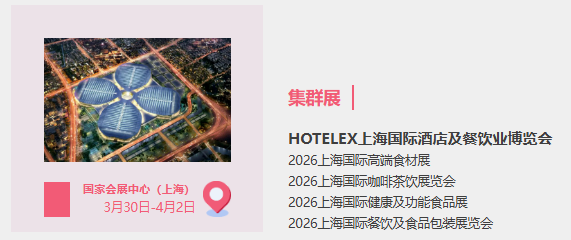 在国家会展中心(上海),聚焦“吃”的消费场景构建。“全球风味CHA饮文化节”以“茶空间”为载体,以“HOTELEX潮饮全球首发创新实验室”为锚点,以“非遗大师及All Star潮饮**秀”为平台,打造茶饮产业的超级赋能平台,推动“茶+旅游”;“世界咖啡风味地图”打造全球各**咖啡产区的生豆贸易及文化交流平台,推动“咖啡+旅游”;“公平田野市集”向国际舞台展示新农人风采,推介新农人的产品,推动“乡村振兴+旅游”;“Finefood上海国际高端食材展”聚焦“源头食材—加工技术—供应链服务”全链路,让餐饮采购更精准、更简单;“SDC上海国际巧克力及糖果展”全面涵盖糖果、巧克力、零食、蜜饯、甜点、饼干等各类甜食产业生态圈;“HOTELEX小家电生活节”结合场景化体验区,实现“咖啡+小家电”两大领域的破圈赋能;“2026HOTELEX‘嘭嘭’面包节”为参观者建立一个集“吃、喝、玩、乐”,交友、洽谈、休闲、打卡为一体的新风尚平台;“The Bar & Drinks”将以“快闪空间”为载体,旨在打破传统酒吧场景的局限,聚焦未来酒吧生态趋势。经典生活方式节“2026上海国际咖啡文化节”又将汇聚全球精品咖啡品牌、烘焙师、潮流特调与沉浸式体验,解锁咖啡的无限可能。