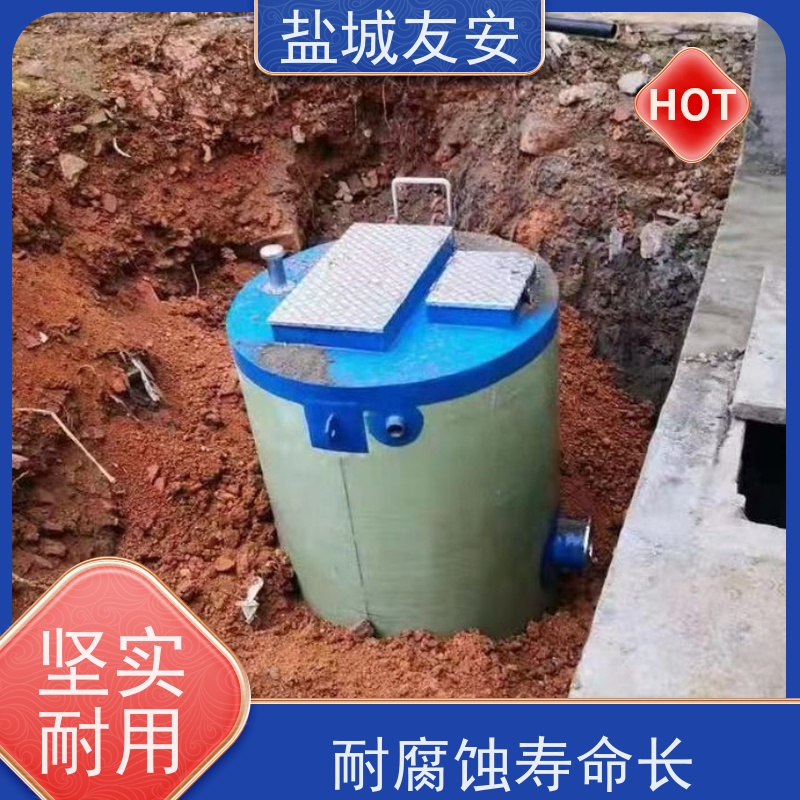 预制化本质:为何“预制泵站”正在替代现场浇筑?[预制泵站]的本质是建造方式的范式转移。传统混凝土泵站依赖现场支模、绑筋、浇筑、养护,受气候、人工、材料供应制约极大,且结构接缝处易渗漏、内壁粗糙导致水力损失增加。友安采用真空导入工艺成型GRP筒体,壁厚误差≤0.3mm,内壁糙率系数n=0.009(远低于混凝土的0.013),水力效率提升12%以上。更关键的是,所有部件均在恒温恒湿车间完成预装调试,包括PLC控制柜、超声波液位计、压力传感器、远程通讯模块等,出厂前经72小时连续带载运行测试。这意味着抵达现场后,无需二次接线、无需程序烧录、无需单机空载试车——吊装就位、连接进出水管、接入市电,即可投入运行。这种确定性,正是当前基建项目严控工期、压降风险的核心诉求。