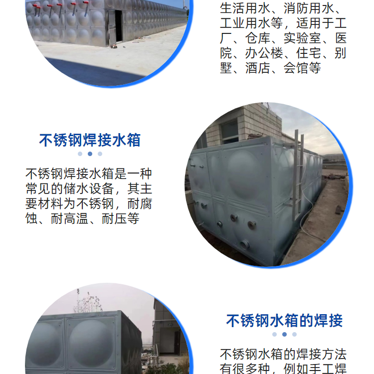 学校:为学生提供充足的饮用水,确保健康需求。 小区:满足居民日常生活的饮水及洗浴需求。 商场:提升购物环境的舒适度,满足顾客的饮水需求。 工厂:确保工人们在高负荷工作的同时拥有足够的水分补充。我们提供多规格的装配式不锈钢水箱,客户可以根据实际需求选择合适的容量,从而达到zuijia使用效果。