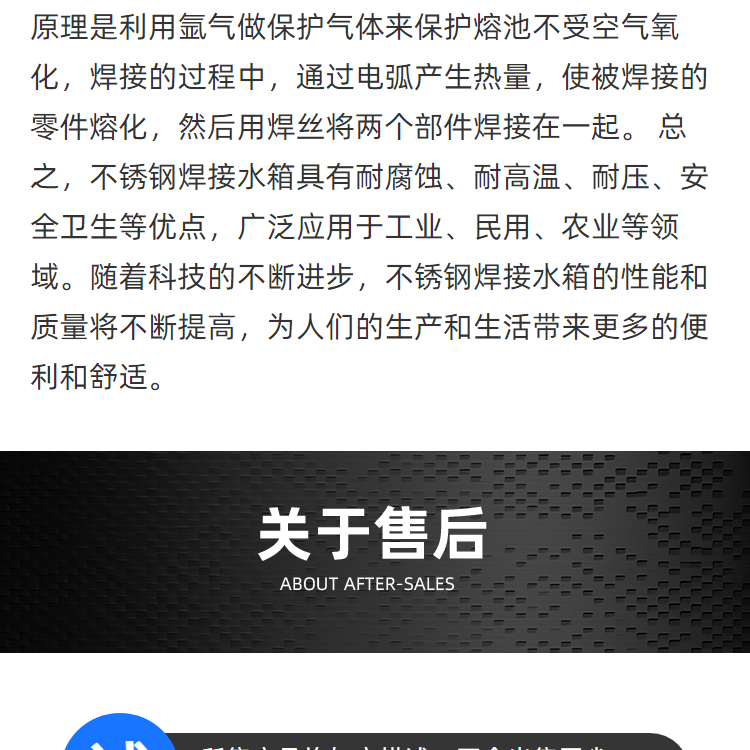 选择友安的理由在众多的水箱品牌中,盐城友安供水设备有限公司凭借优质的产品和良好的服务赢得了广大客户的信任。我们坚持以客户为中心,根据市场需求不断创新产品,在不锈钢水箱的设计与制造上,不断探索新的技术和理念。