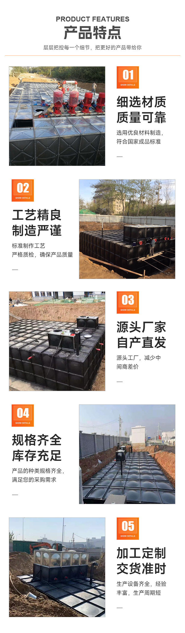 其次,使用寿命长也是该水箱的重要特点。经过专业的设计和严格的生产工艺,大模块消防水箱能够承受较大的压力和重量,结构坚固耐用。与传统的水箱相比,其使用寿命大大延长,减少了用户频繁更换水箱的成本和麻烦。这对于消防系统的长期稳定运行具有重要意义,能够为用户提供可靠的保障。