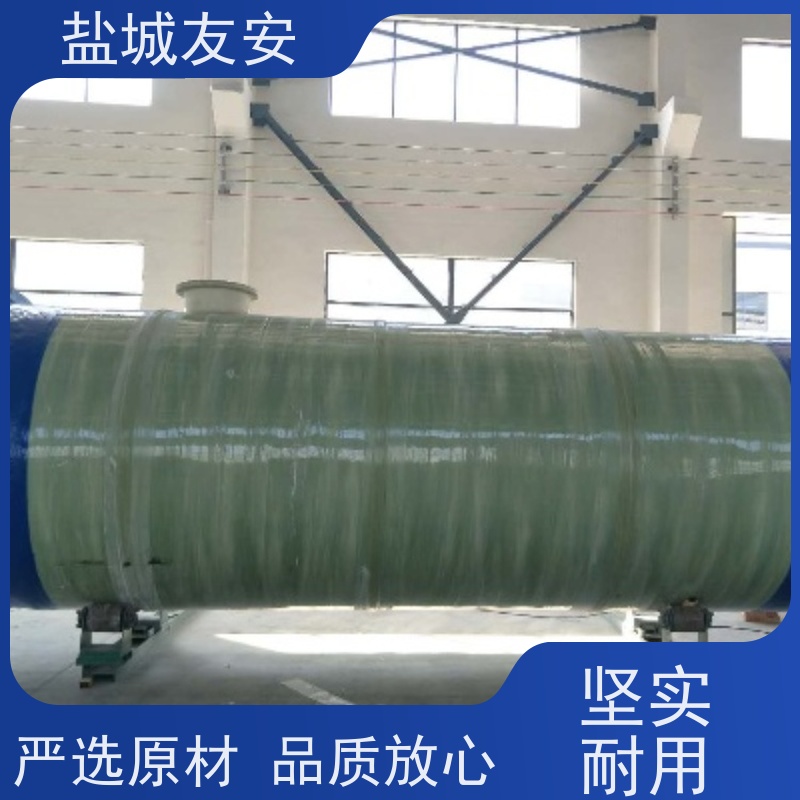 GRP玻璃钢一体化泵站:材料科学赋能长效服役泵站寿命取决于筒体耐久性。友安选用食品级不饱和聚酯树脂与高碱无捻粗纱玻纤复合,经高温固化形成致密三维网状结构。相比传统混凝土泵站易受酸雨、地下水盐分侵蚀而粉化开裂,GRP玻璃钢一体化泵站具备pH值2–12全范围化学稳定性,且表面富树脂层厚度≥0.5mm,有效阻隔紫外线老化。第三方加速老化试验显示,其在模拟盐城滨海高湿高盐环境下服役寿命可达30年以上。材料优势还延伸至轻量化——单台标准规格泵站总重不足传统泵房的1/5,大幅降低运输与吊装成本,尤其利于狭窄街巷或既有道路下方的改造项目。材料即性能,GRP不仅是容器,更是保障系统三十年如一日稳定运行的物理基石。