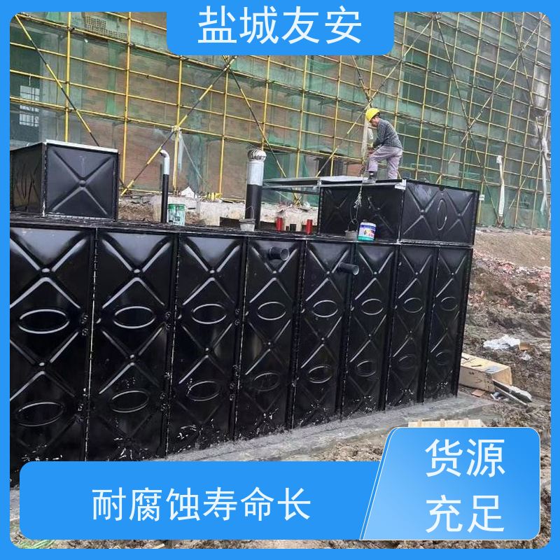 装配式箱泵一体化消防给水泵站:施工效率与质量可控性的双重兑现装配式理念在消防工程中的真正价值,不在于“快”,而在于“准”。友安的地埋式消防箱泵一体化产品采用标准化模数设计:水箱单板宽度为1000mm,高度为500mm,泵组基础框架与箱体法兰完全匹配;所有螺栓孔位、吊装耳板、进出水口方位均按BIM模型预制,现场仅需8小时内完成吊装、回填与通水调试。相比现浇混凝土水箱动辄20天以上的工期,装配式方案大幅缩短地下作业窗口期,降低基坑暴露风险,尤其适用于城市更新项目中狭小场地、临近既有建筑等复杂工况。更重要的是,工厂化生产确保每块板的涂覆厚度、每条焊缝的探伤记录、每台泵的流量扬程曲线均可追溯,质量管控节点前移至制造源头。