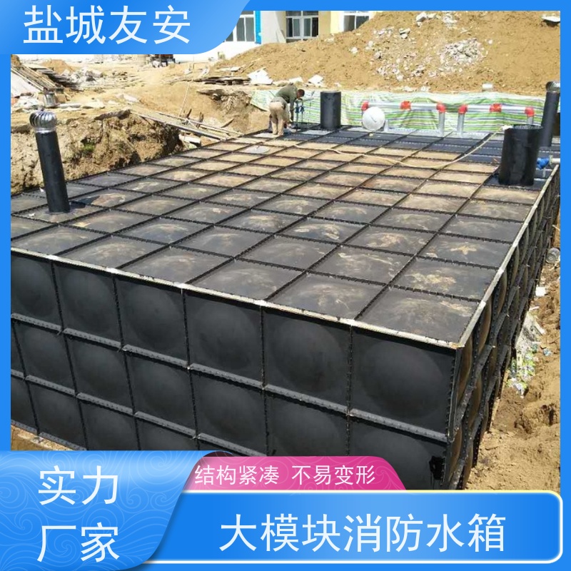 模块化基因:让消防水箱告别“现场焊接时代”传统混凝土消防水箱施工周期长、接缝多、渗漏率高;不锈钢水箱虽耐腐但成本陡增且运输受限。友安推出的【大模块消防水箱】采用专利榫卯式拼装结构,单模块尺寸严格控制在3m×2m×1.5m以内,满足标准物流车辆装载要求。模块间通过304不锈钢螺栓+三元乙丙橡胶密封垫片紧固,现场组装误差<1.2mm,满水试压72小时无渗漏。该设计不仅大幅压缩工期(同等容积下较现浇混凝土缩短65%工期),更使后期扩容、迁移、检修成为可能——某盐城开发区电子产业园项目曾因二期厂房扩建,仅用1天即完成水箱整体平移并重新对接泵站,零停水、零重建。