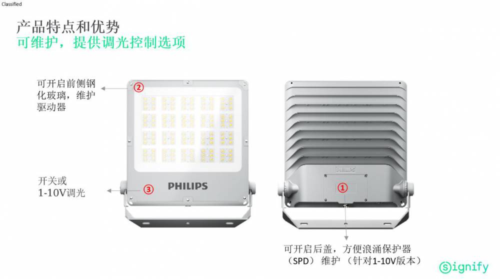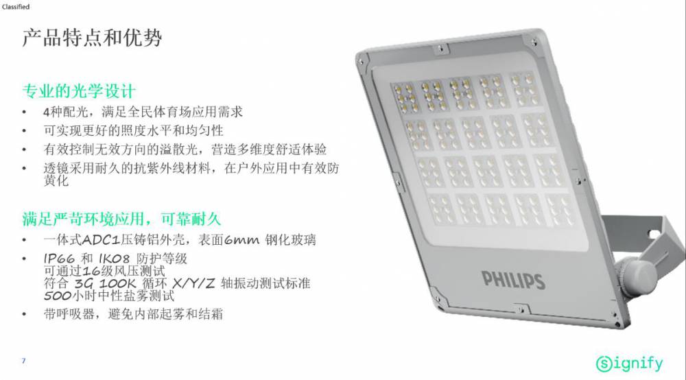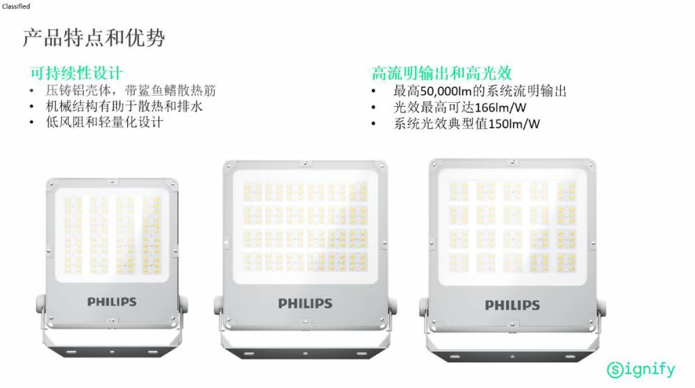 飞利浦LED投光灯BVP252透镜采用耐久的抗紫外线材料,在户外应用中有效防黄化