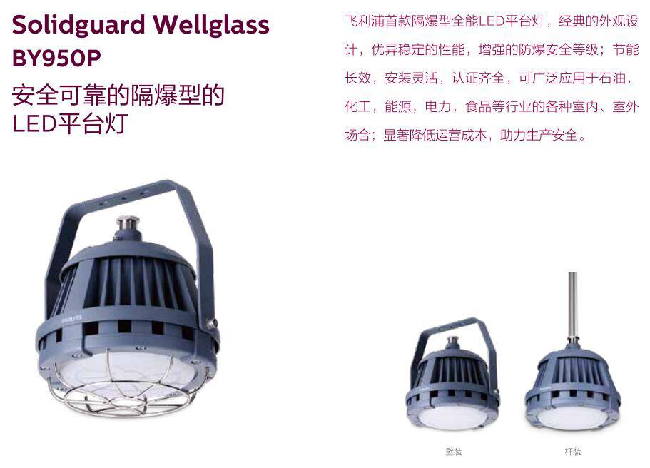 飞利浦首款隔爆型全能LED平台灯BY950P,良好的外观设计,优异稳定的性能,增强的防爆安全等级;